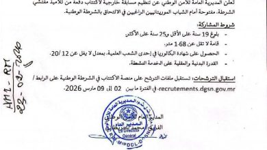 الأمن الوطني يفتح مسابقتين لاكتتاب وكلاء ومفتشي الشرطة في موريتانيا